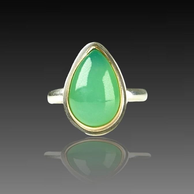 High grade Australian Chrysoprase with 14k gold filled bezel with sterling silver platform and band.